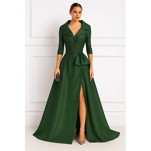 Linea ad A Lunghezza al pavimento Abito da invitata a nozze Abito Formale Abito da sera Abito da cerimonia per signora Manica 3/4 Colletto a Camicia Elegante Formale Ferie Compleanno Raso con