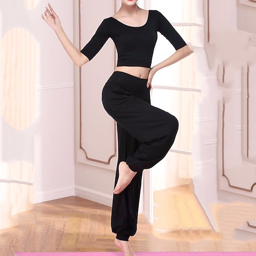 Per donna Tuta da yoga Pantaloni a lanterna Set da allenamento da 2 pezzi Tinta unica Completo Abbigliamento Autunno Nero Bianco Modal Danza Pilates Yoga Vita Alta Leggero Traspirante Mezza Manica