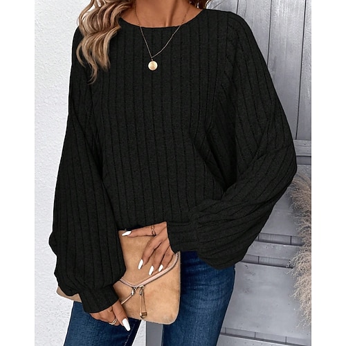 Per donna Maglietta Tinta unica Moda Elegante Classico Manica Lunga Manica a Lanterna Girocollo Top Regolari Quotidiano Weekend Nero Rosa Cachi Grigio chiaro Rosa Primavera Autunno Inverno