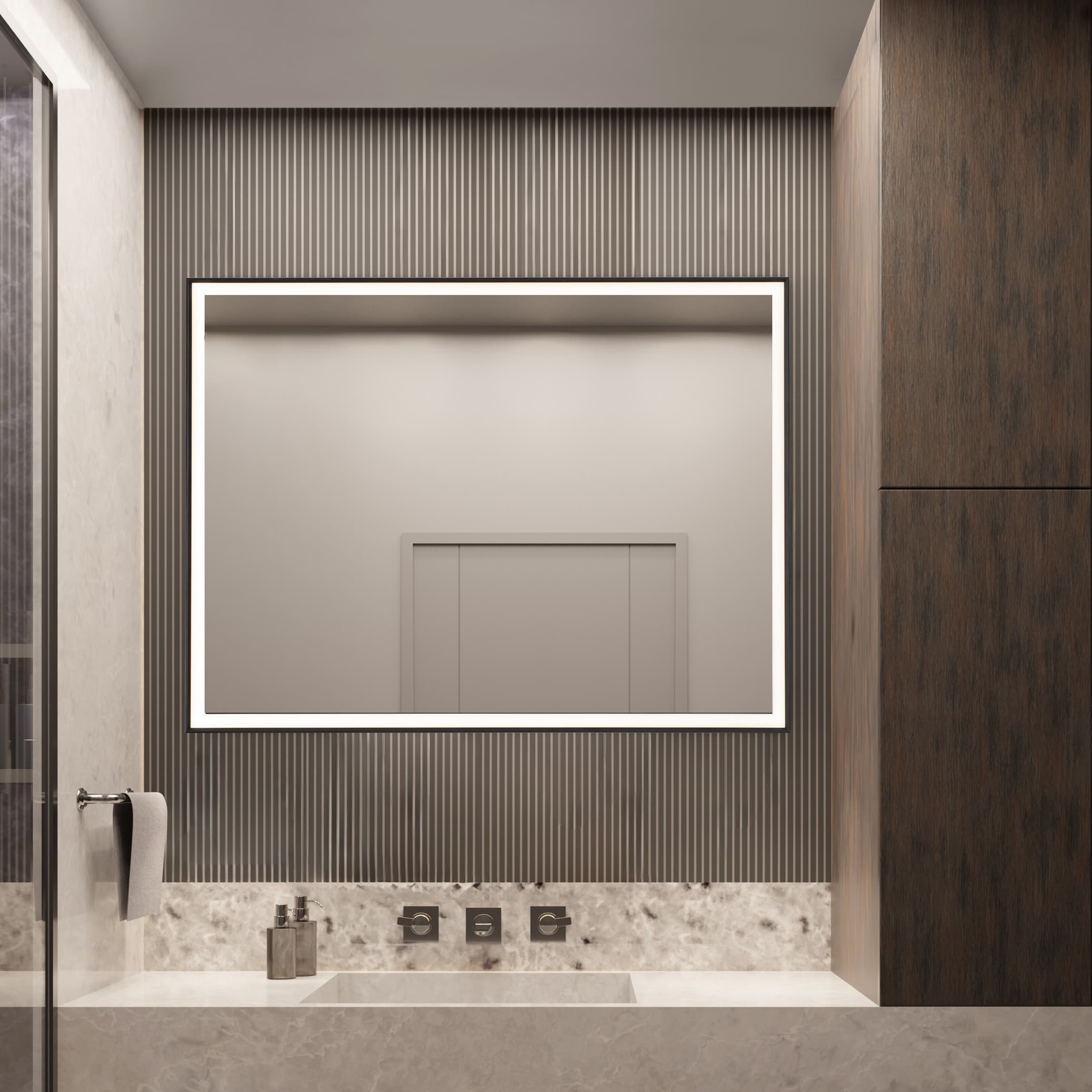 Bluehome SPECCHIO BLACK 100x70cm (LxH) FILO LUCIDO REVERSIBILE NERO LAMPADA LED LUCE FREDDA 5 W
