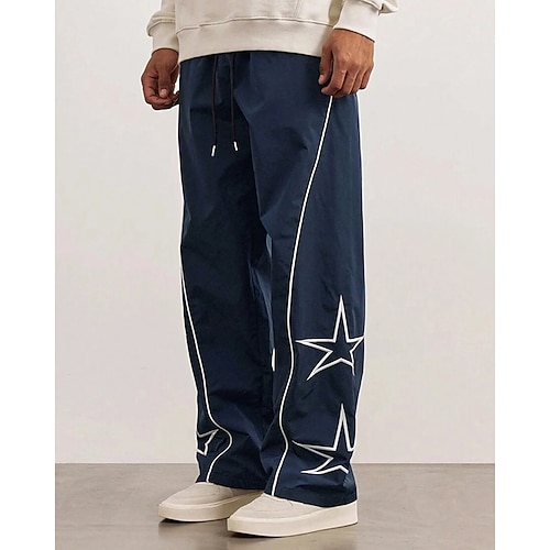 Herren Hose Tech-Hosen Freizeithose Kordelzug Tasche Elastischer Bund Stern Komfort Sport im Freien Täglich Mode Lässig Schwarz Marineblau Mikroelastisch