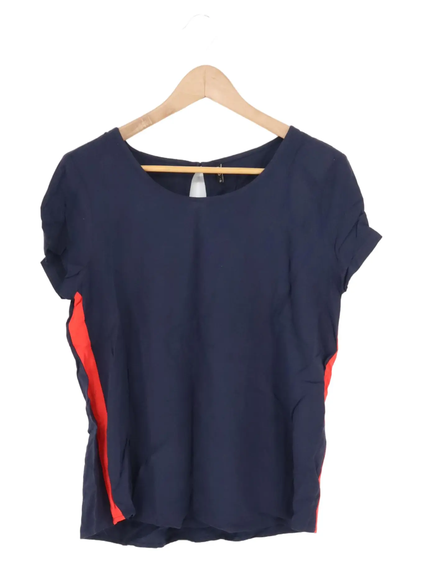 ONLY Damen T-Shirt Gr. 38 Dunkelblau Rote Seitenstreifen