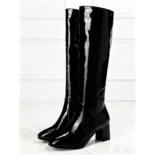 stivali alti fino al ginocchio da donna in similpelle verniciata rossa - tacco spesso alla moda, chiusura con cerniera, alla moda e alla moda per tutti i giorni, le feste e le serate fuori
