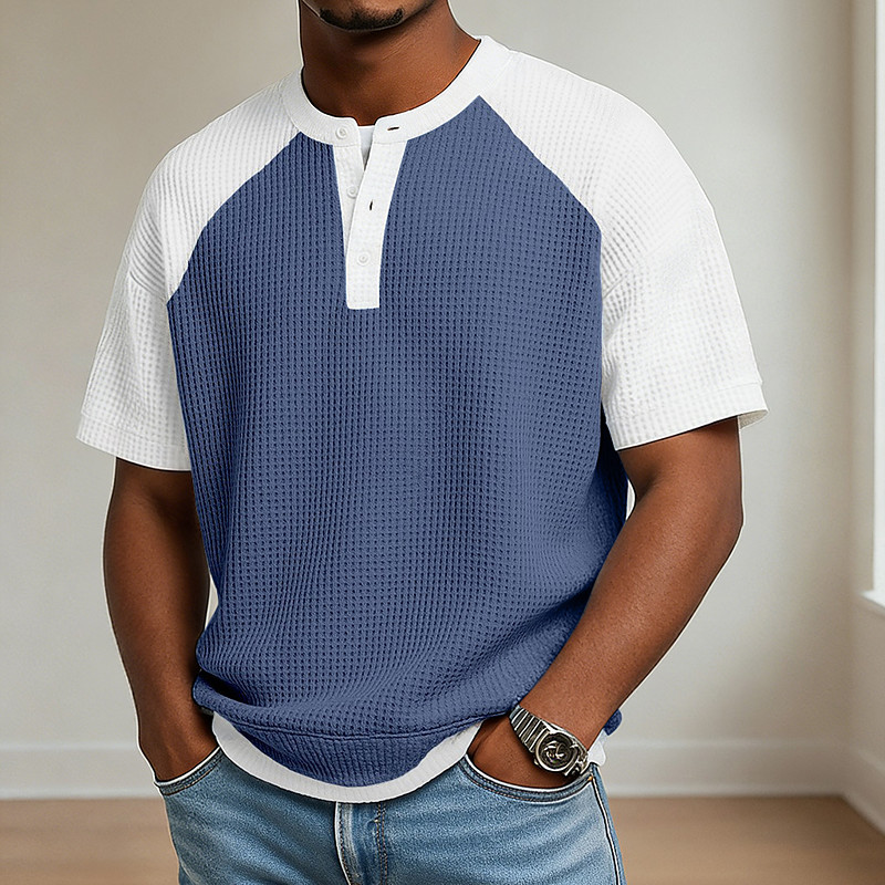 Men Waffle T-shirt Tee Top Short Sleeve Henley Summer Spring Spring Summer Solid Color Textured Fashion Designer Casual Color Block Knitted Casual Daily Outdoor Light Blue Light Green Purple Top
