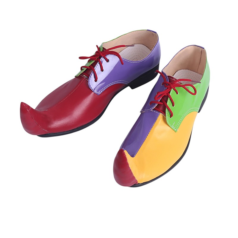 Men's Colorful Clown Shoes with Multi-Color Panels and Red Laces, Fun Playful Style for Carnival and Clown Costumes