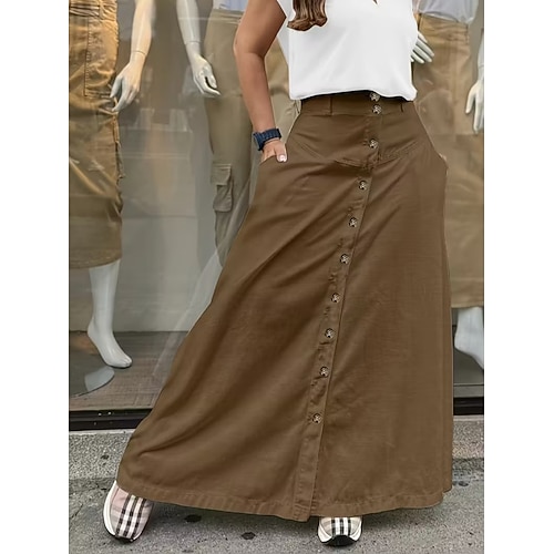 Per donna Gonna da vacanza Moda Casual Maxi Vita Alta Gonne Semplice Tasca Micro-elastico Quotidiano Streetwear Nero Marrone Verde Grigio Estate Poliestere