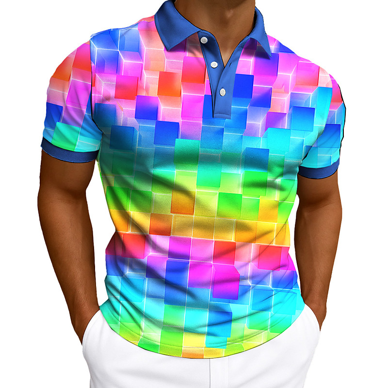 Men's Grid / Plaid Patterns Polo Sports Polo Shirts Short Sleeve Polo Shirts Collared Shirts Casual Athleisure Buttons Summer Pink Red