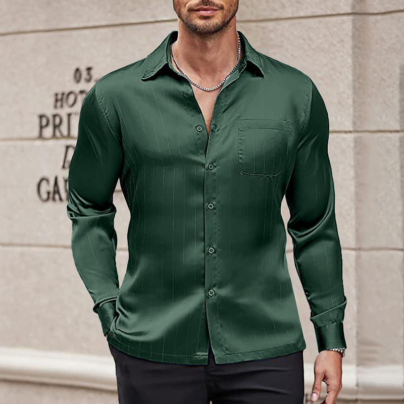 Men's Shirt Satin Shirt Dress Shirt Button Up Shirt Prom Shirt Stripes Business Wedding Light Blue Black White Wine Long Sleeve Shirt Collar All Seasons Clothing Apparel Plain