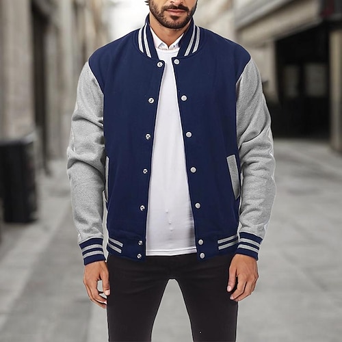 Per uomo Giacca di transizione Giacca College Baseball Fisioterapia Base Tutte le stagioni Classico Divisa scolastica Regolare Nero Blu marino Blu reale Grigio chiaro Giacca
