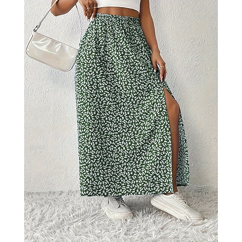 Per donna Gonna Moda Casual Maxi Vita Alta Gonne Floreale Stampato Con Spacco Micro-elastico Quotidiano Vacanza Nero Rosso Blu reale Azzurro cielo Estate Poliestere