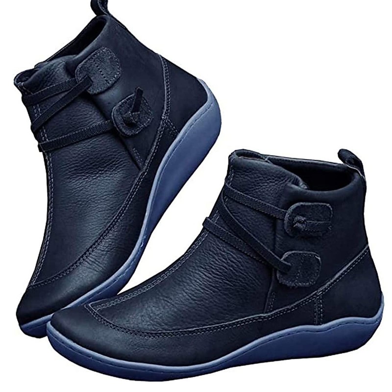 Women's Red Casual Ankle Boots – Soft Faux Leather Warm Lined Flat Booties with Adjustable Strap for Walking, Travel and Winter Outfits