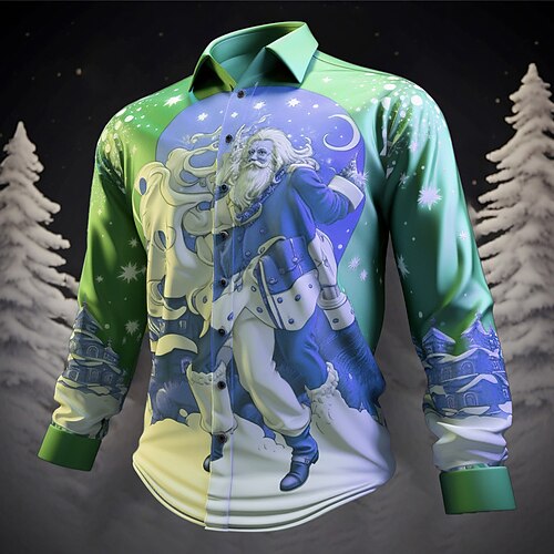Weihnachten herren santa claus gedruckt hemden santa claus casual täglichen kleidung ausgehen herbstamp;Winter Turndown Langarm gelb, rosa, royalblau S, M, L 4-Wege-Stretchstoff Weihnachten