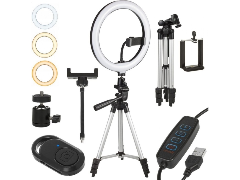 LED Selfie Ring Light med Stativ og Mobilholder SBS - Svart