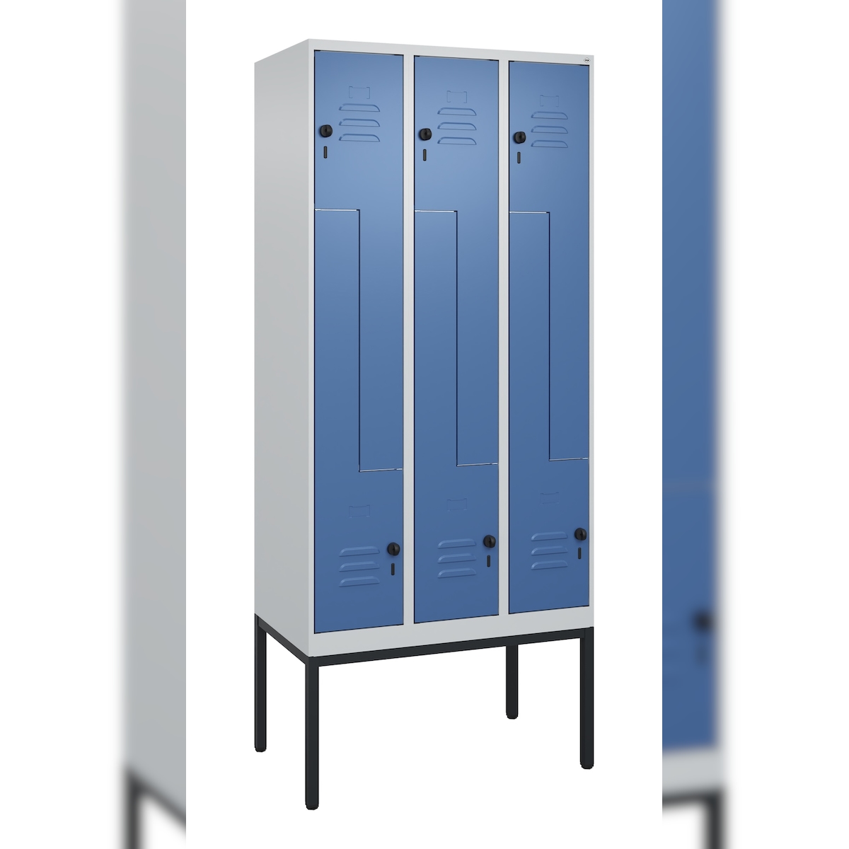 C+P Z-Spind Classic PLUS, Sockel, 2 Abteile, HxBxT 195x30x50cm, Zylinderschloss, Hellgrau/Enzianblau von PROREGAL