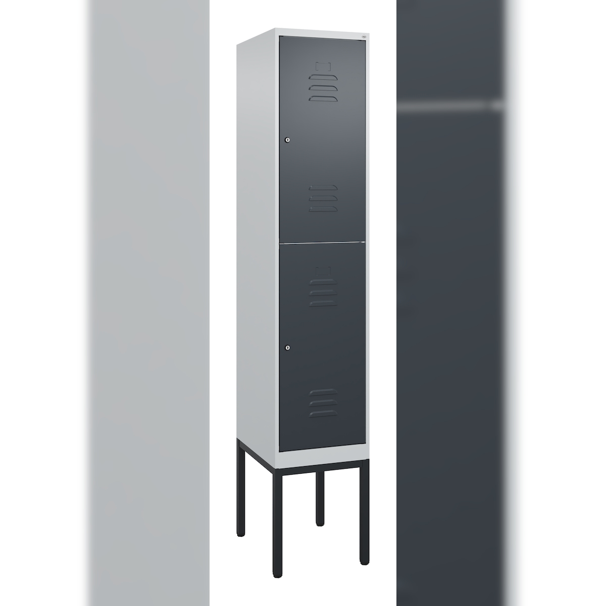 C+P Spind Classic PLUS, Gestell, 2 Abteile, HxBxT 212x40x50cm, Zylinderschloss, Hellgrau/Anthrazit von PROREGAL