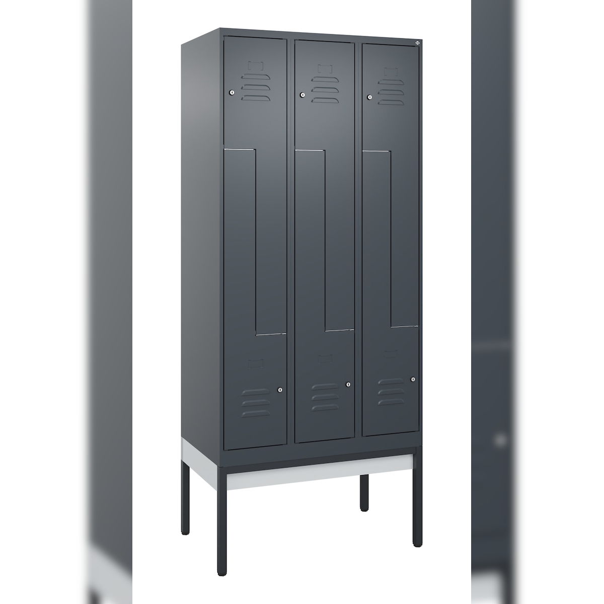 C+P Spind Classic PLUS, Sockel, 3 Abteile, 1630x900x500mm, 7035/3020
