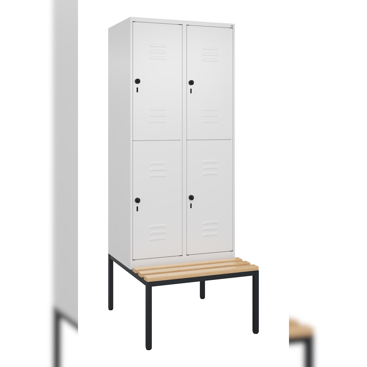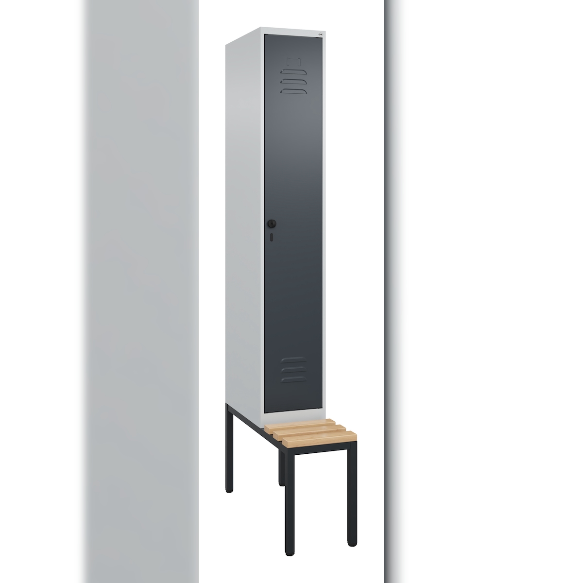 C+P Spind Classic PLUS, schwebender Sitzbank aus Buche 1 Abteil, HxBxT 212x40x82cm, Sicherheitsdrehriegel, Hellgrau/Hellgrau von PROREGAL