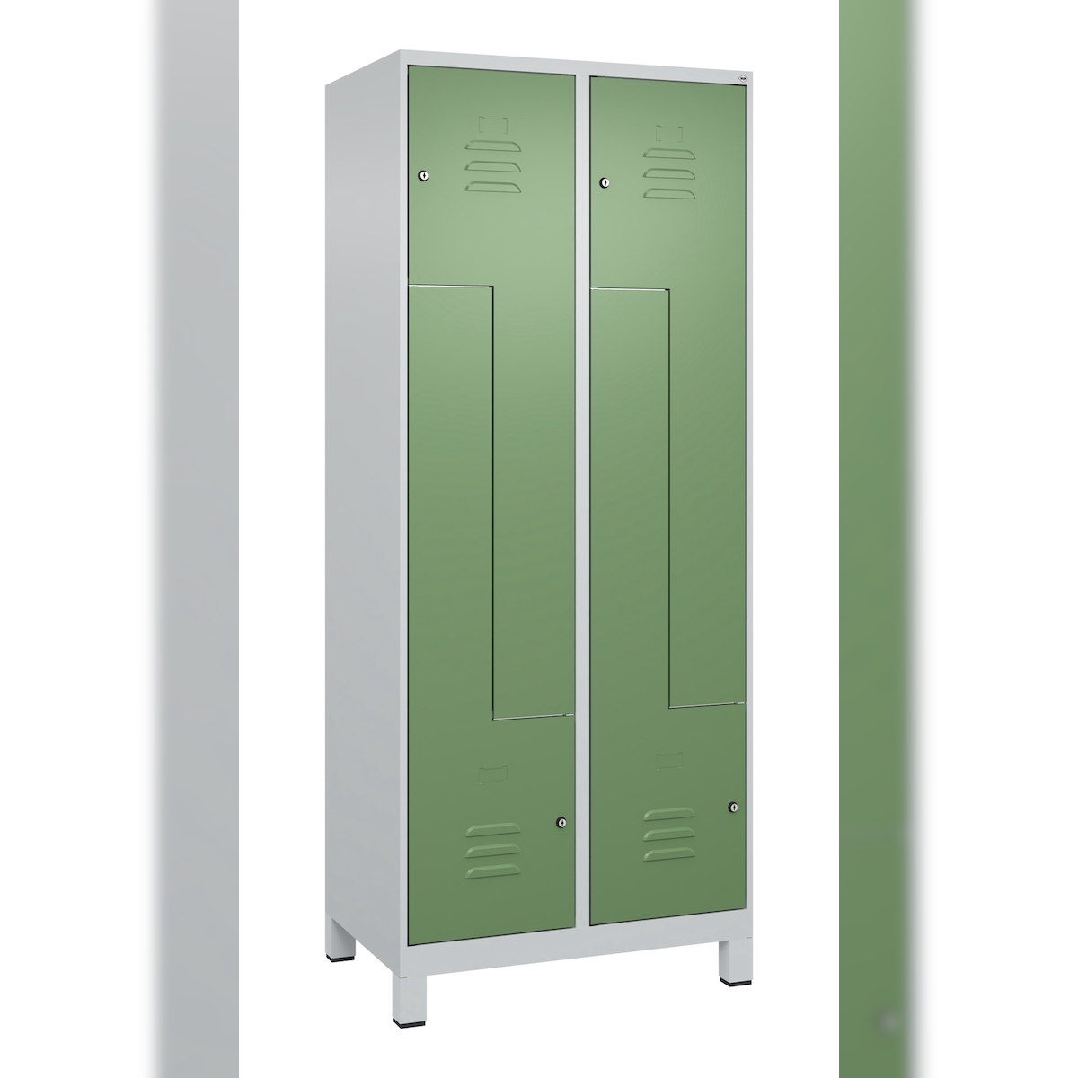 C+P Z-Spind Classic PLUS, Füßen, 4 Abteile, HxBxT 195x80x50cm, Zylinderschloss, Hellgrau/Resedagrün von PROREGAL