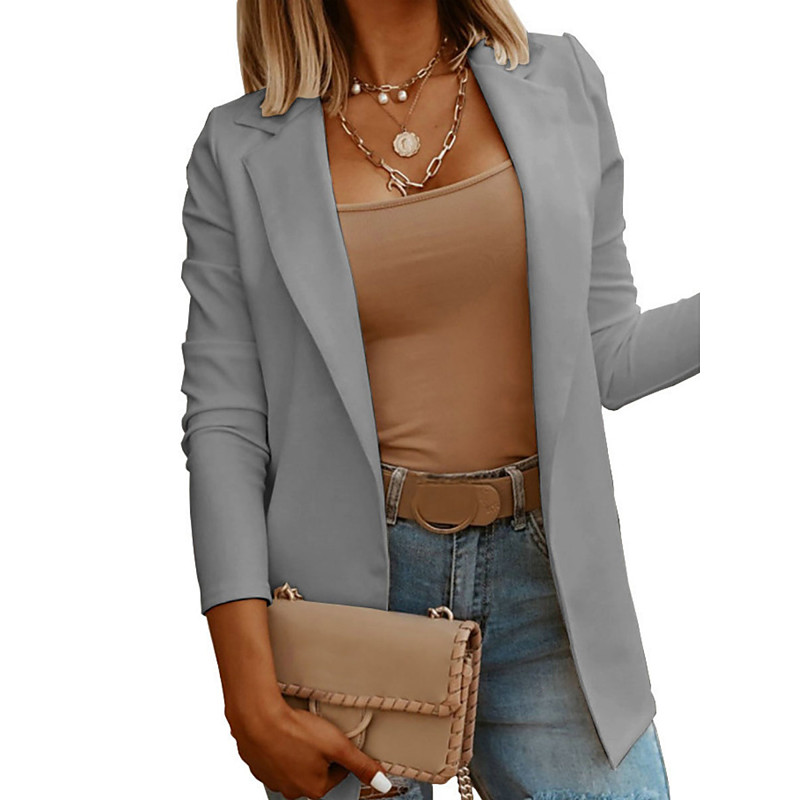 Women's Casual Jacket Comfortable Breathable Slim Fit Casual Plain Vacation Work Street Casual Open Front Regular Turndown Regular Fit Long Sleeve Outerwear Black White Blue Summer Spring