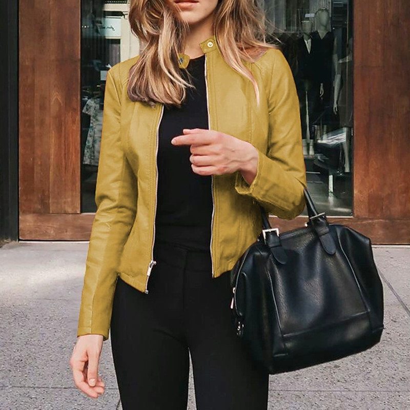 Women's Casual Jacket Biker Jacket Comfortable Breathable Zipper Pocket Fashion Casual Plain Vacation Street Casual Daily Wear Zipper Short Turndown Slim Long Sleeve Outerwear Light Yellow Black Red