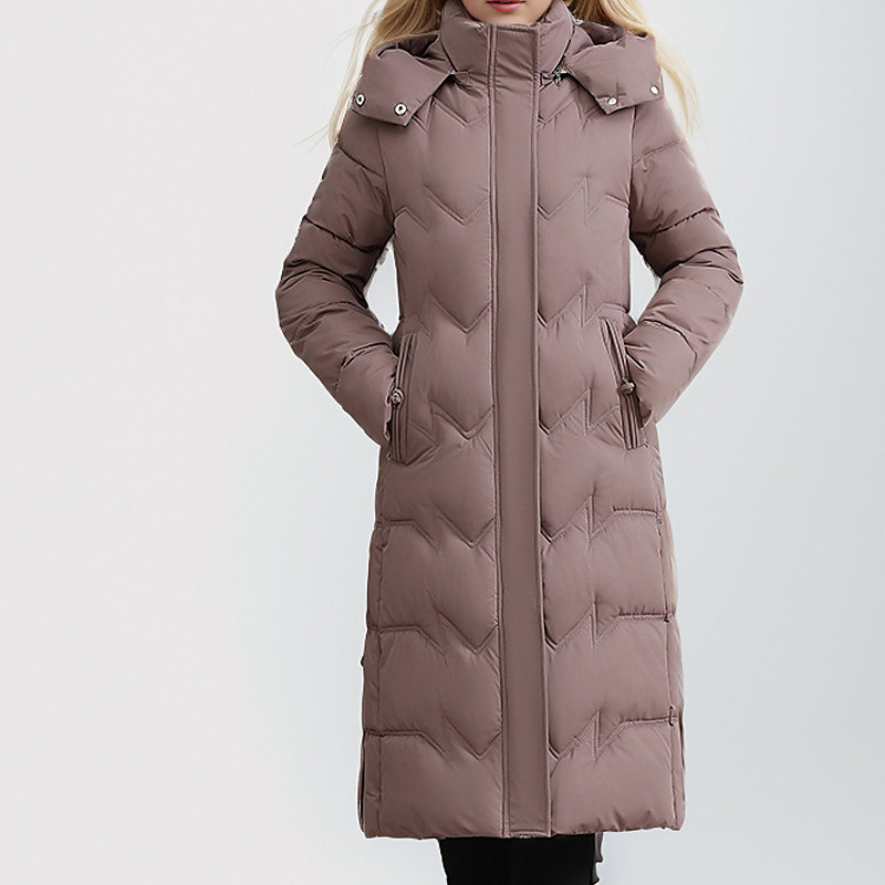Women's Puffer Jacket Quilted Jacket Hoodie Jacket Warm Comfortable Zipper Pocket Casual Plain Outdoor Vacation Daily Wear Going out Long Hooded Slim Long Sleeve Outerwear Black Wine Fuchsia Fall