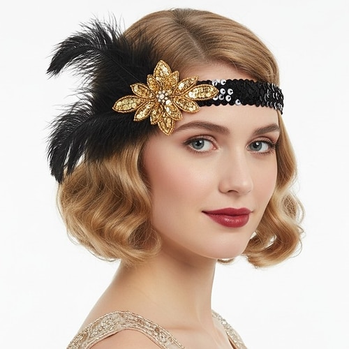 Anni Ruggenti Anni 1920 Fascia Flapper Copricapo Accessori per la testa Il grande Gatsby Ragazza Flapper Piuma Costume Per donna Natale Carnevale Mascherata Festa a tema retrò Danza Charleston Adulti