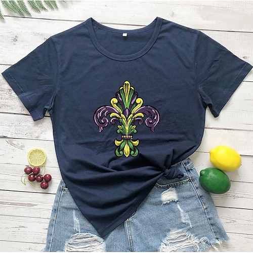 Per donna maglietta Cotone Stampa Carnevale Giornaliero Fine settimana Di tendenza Manica corta Rotonda Vino Primavera estate