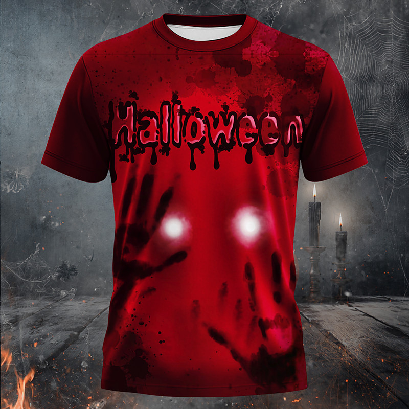 Men's Optical Illusion 3D T Shirt Short Sleeve T shirt 3D Print Crew Neck Shirt Exaggerated Designer Horror Party Holiday Club Red Summer Spring Clothing Apparel S M L XL XXL XXXL