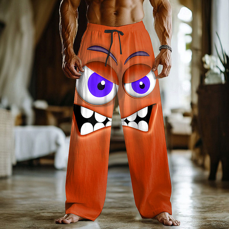 Men's 3D Cartoon Smile Face Trousers Baggy Pants Casual Pants Mid Waist Funny Outdoor Vacation Home Elastic Drawstring Waist Linen-Like Pants with Pockets Spring Fall 3D Print Red Blue Orange