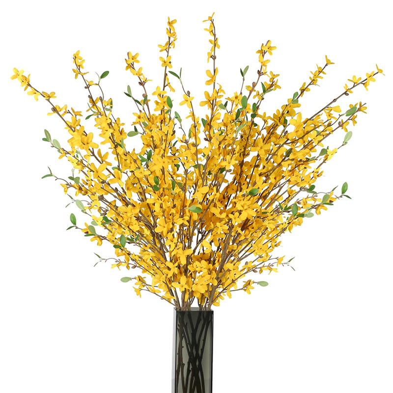 3PCS 3.28ft/1m Artificial Forsythia Stem Artificial Orchids Flowers Silk Forsythia Branches, Long Stem Flowers Yellow Winter Jasmine for Home Decor Indoor Floral Arrangements Wedding Farmhouse Cemetery