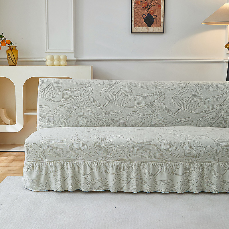 2 Different Sizes Skirt Hem Style Jacquard Fabric Armless Sofa Bed Cover Sofa New Year Decor Slipcovers Stretch Protector Elastic Bench Cover