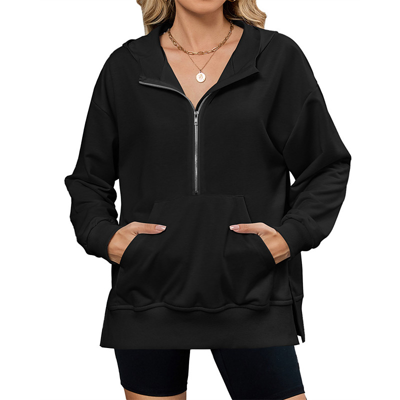 Women's Pullover Hoodie Sweatshirt Plain Streetwear Casual Comfy Long Sleeve Hooded Regular Tops Street Holiday Going out Half Zipper Quarter Zipper Front Pocket Quarter Zip Black Pink Blue Khaki Gray