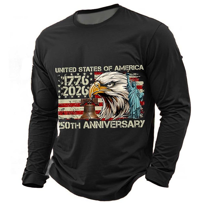 America's 250th Anniversary Men's American US Flag Eagle T Shirt Long Sleeve T shirt 3D Print Crew Neck Shirt Daily Casual Daily Travel Party Blue Black Army Green Summer Spring Fall Clothing Apparel