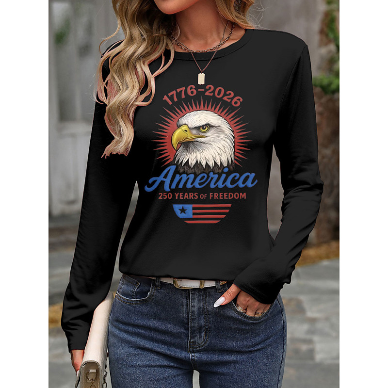 American 250th Women's Independence Day T Shirt Graphic USA Flag Fashion Stylish Classic Long Sleeve Crew Neck Regular Tops Daily Weekend Print Black White Red Summer Spring Fall