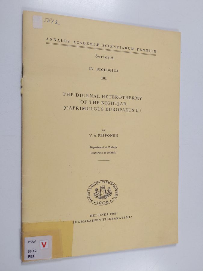 Valto A. Peiponen : The diurnal heterothermy of the nightjar (Caprimulgus Europaeus L.)