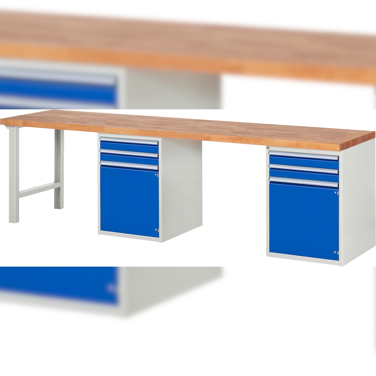 PROREGAL Werkbank Serie 7000 - Modell 7503 | HxBxT 84x300x70cm | 4x Schublade + 2x Flügeltür + 2x Fachboden | Schubladenmaße 4x90mm
