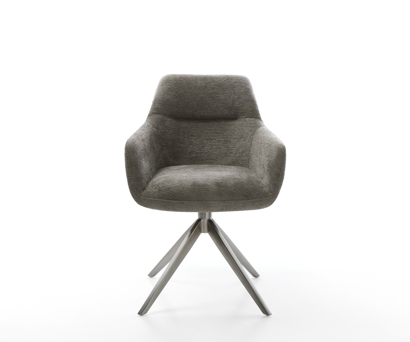 DELIFE Draaistoel Heira-Flex met armleuning bouclé wit kruisframe breed afwerking met titanium 360° draaibaar pocketveer kern