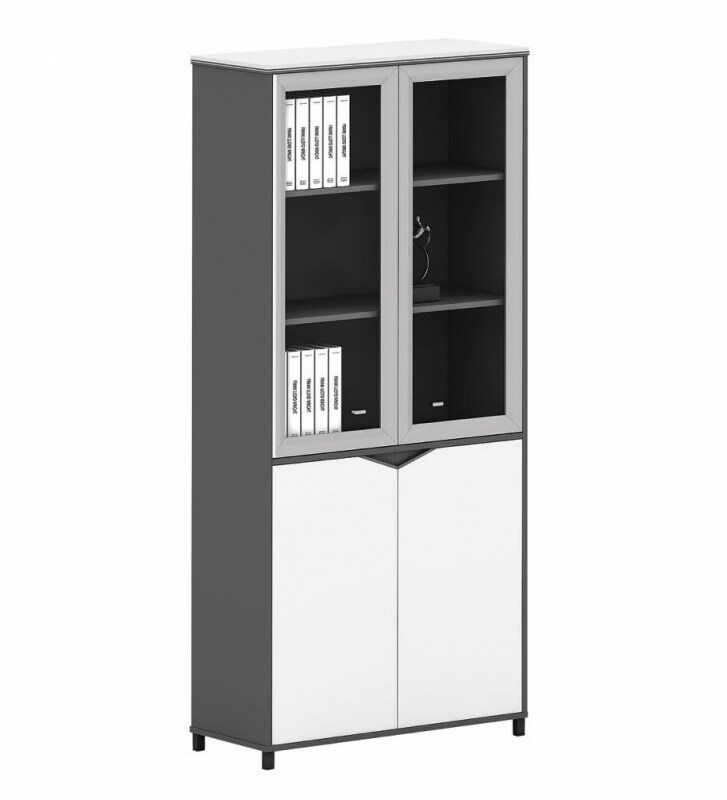 Jet-Line Aktenschrank Sideboard Glastürenschrank Flügeltürenschrank Holzschrank Büroschrank Büroausstattung Büromöbel Bürozubehör Carlo schwarz/weiß