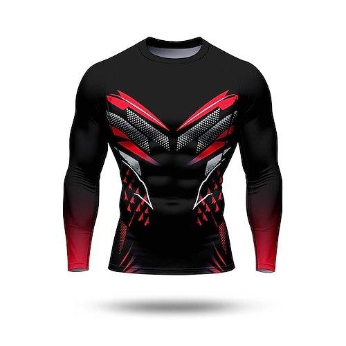 Per uomo Maglia a compressione Maglia da corsa Stampa 3D Manica Lunga Livello Base Gradiente di Colore Asciugatura Rapida Compressione Elasticizzato Traspirante Allenamento in Palestra Allenamento