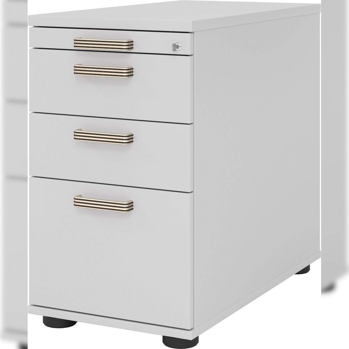 bümö Schreibtisch Schrank Büro mit Hängeregister für Hängeordner, Schubladenschrank Holz in grau, Container mit Schubladen & Hängeregistratur -