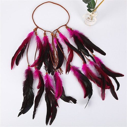 Accessori Samba per il Carnevale 2026 Rio Carnival - Cerchietto per Capelli in Piuma Nera Rossa Bohemien - Accessorio per Capelli Hippie Regolabile Intrecciato con Perline Costume per Performance