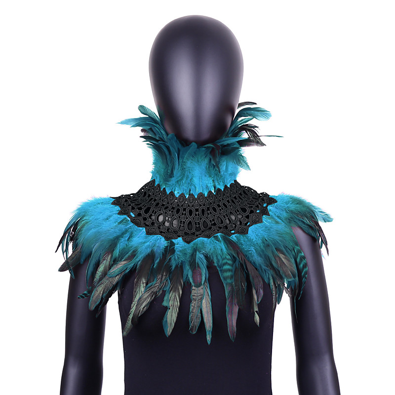 Carnival 2026Rio Carnival Samba Accessories Women's Teal Feather Cape Shawl with Black Lace Choker Brazil Festival Performance Costume