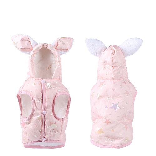 Graziosa felpa con cappuccio e orecchie da coniglio per cani - giacca per animali con stampa a stelle rosa - adorabile costume pasquale per cani di piccola taglia