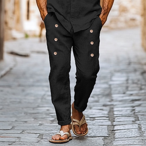 Per uomo Pantaloni di Lino Pantaloni Pantaloni Estivi Bottoni Tasca Frontale Pieghe Semplice Comodità Traspirante Lunghezza intera Casuale Quotidiano Abbigliamento casual alla moda Stile Etnico Retr