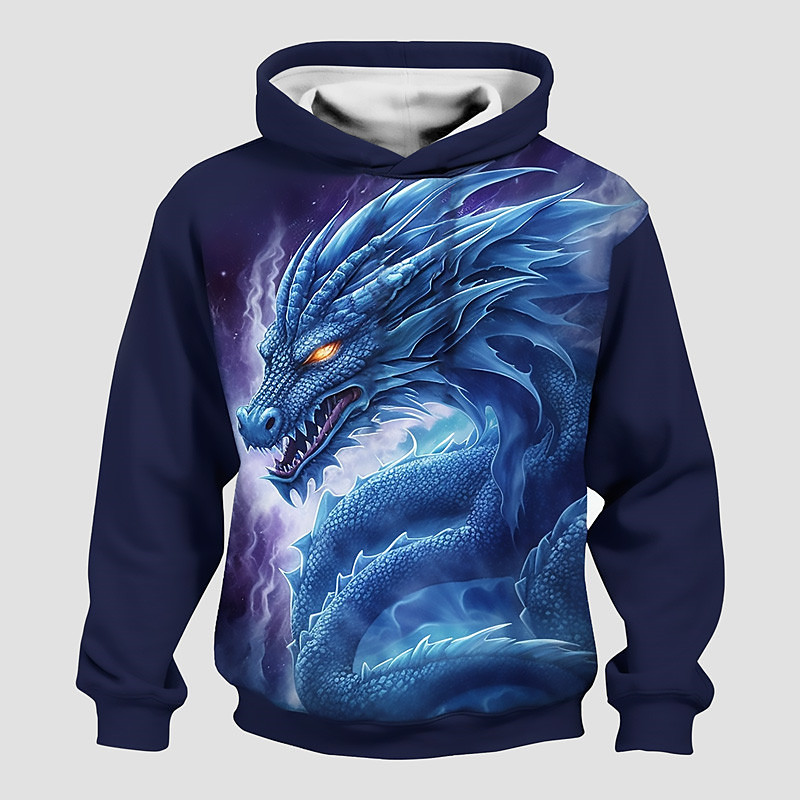 Men's Dragon 3D Hoodie Sweatshirt Cool Party Long Sleeve Crew Neck Club Streetwear Blue Red Purple Drawstring Fall Winter Designer S M L XL XXL XXXL