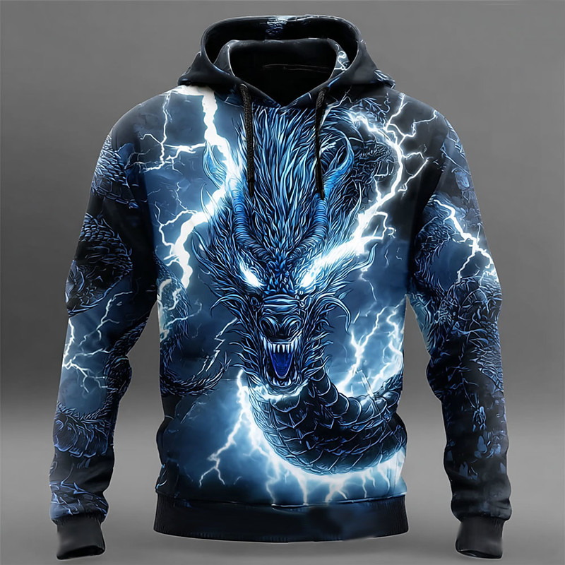 Men's Dragon 3D Hoodies Sweatshirt Cool Party Casual Long Sleeve Crew Neck Hooded Club Streetwear Black Blue Drawstring Fall Winter Designer S M L XL XXL XXXL