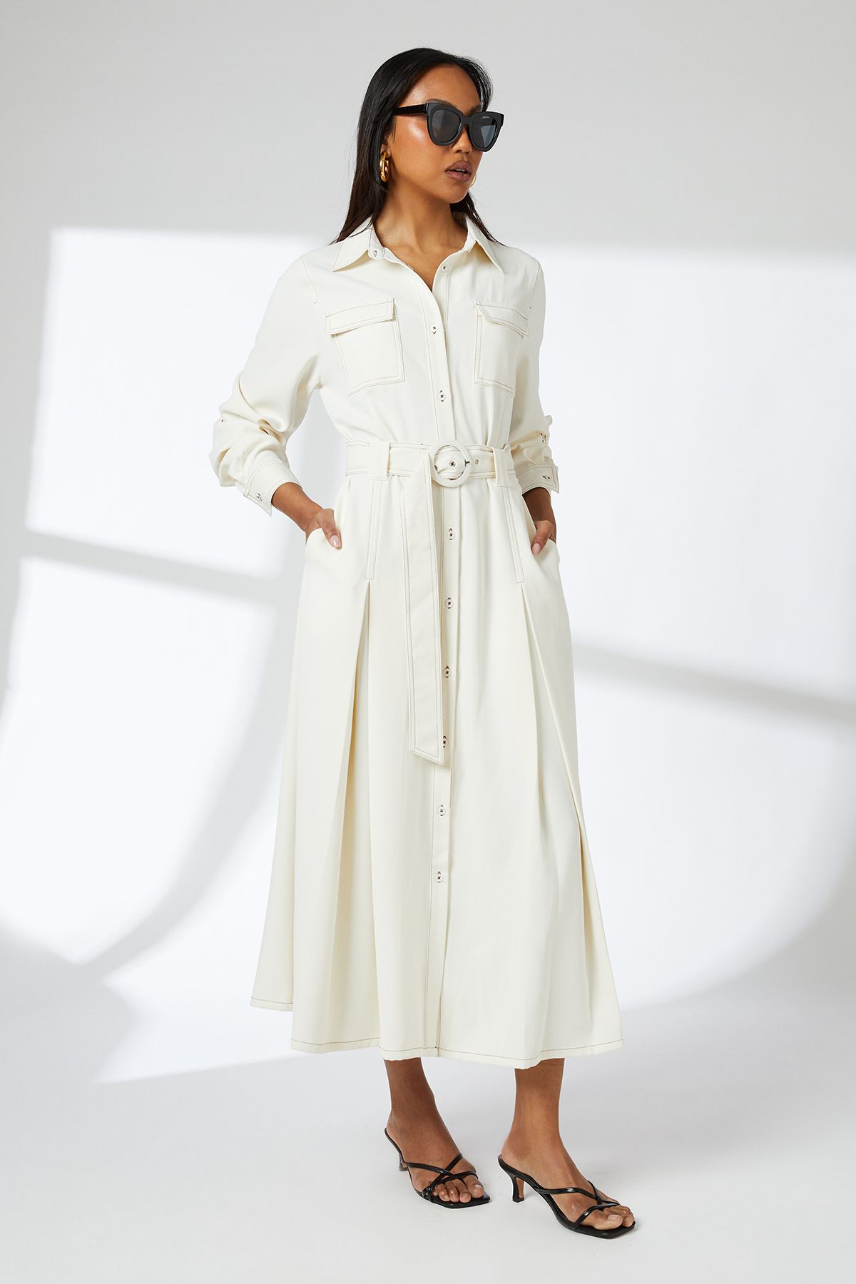 Principles Womens Ecru Contrast Stitch Belted Utility Dress - Size 14 UK | Principles Sale | Discount Designer Brands
