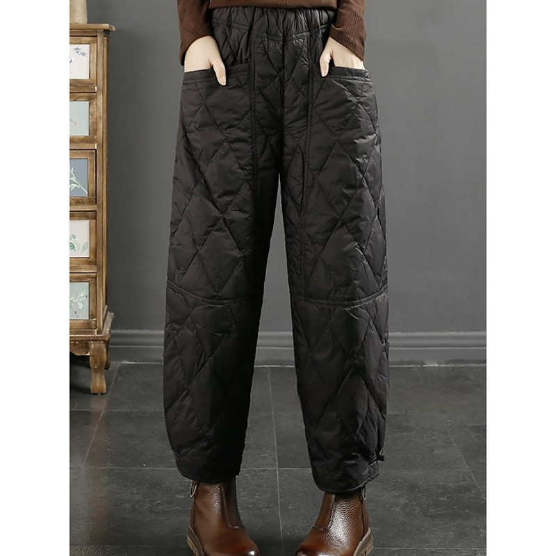 Women's Chinos Streetwear Casual Full Length High Waist Plain Pocket Elastic Waist Comfortable Micro-elastic Outdoor Vacation Daily Black White Coffee Gray Fall Winter Loose Fit