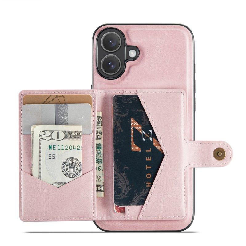 JEEHOOD iPhone 16 Plus Fodral KonstLäder Plast Avtagbar - Rosa