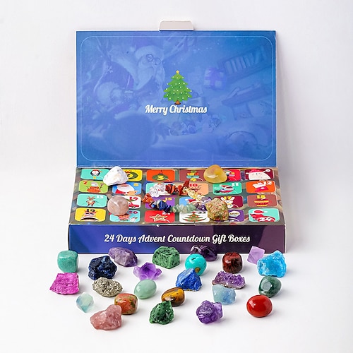 Weihnachts-Edelstein-Adventskalender 2025, Steinsammlung-Adventskalender für Kinder mit 24 natürlichen Edelsteinen zum täglichen Öffnen, Weihnachts-Countdown-Kalender für Jungen, Mädchen, Jugendliche